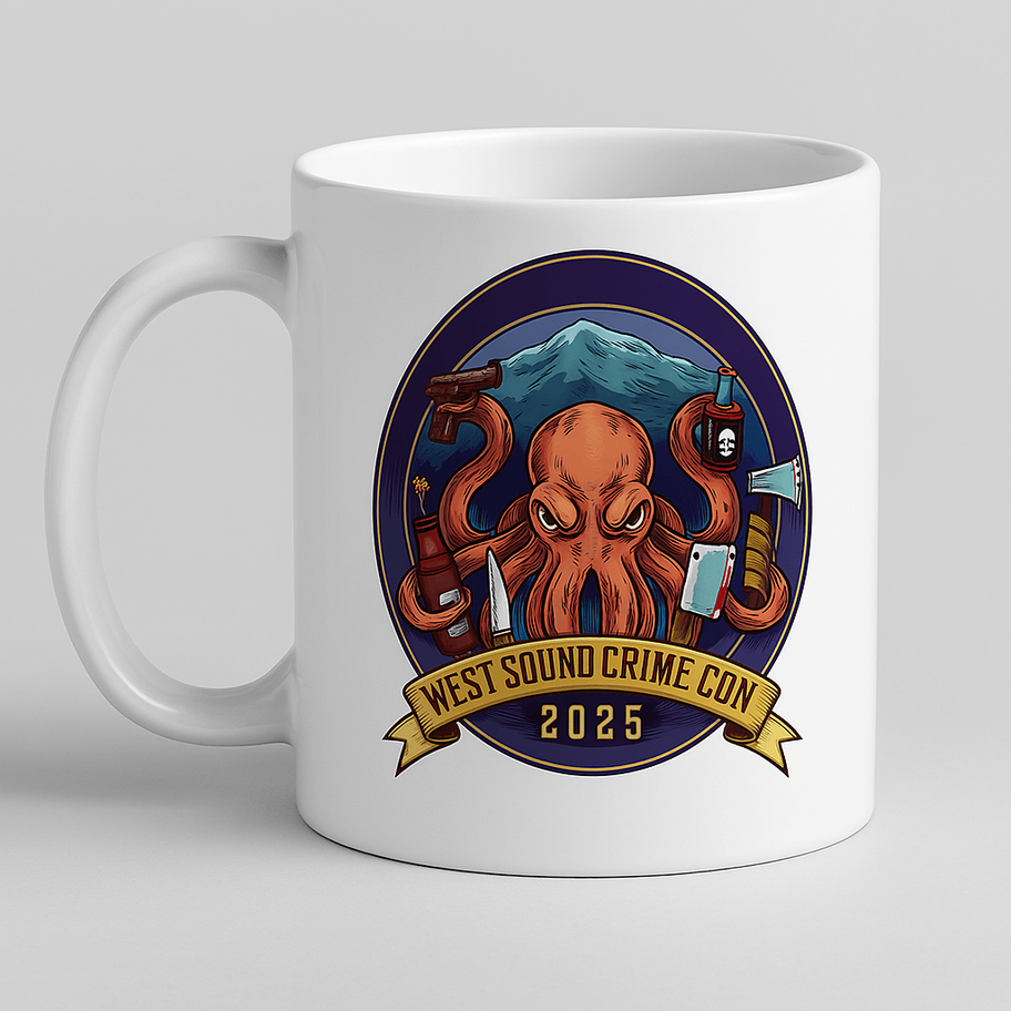 This ceramic mug features the official West Sound Crime Con logo and is perfect for sipping coffee, tea, or the bitter truth. Dishwasher safe, microwave friendly, and guaranteed to raise fewer questions than your browser history.