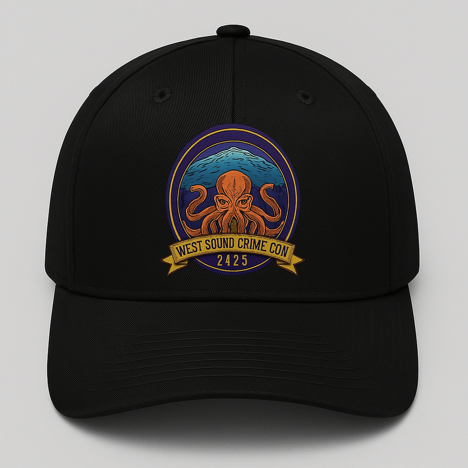 Embroidered with the West Sound Crime Con logo, it’s equal parts subtle and suspicious.